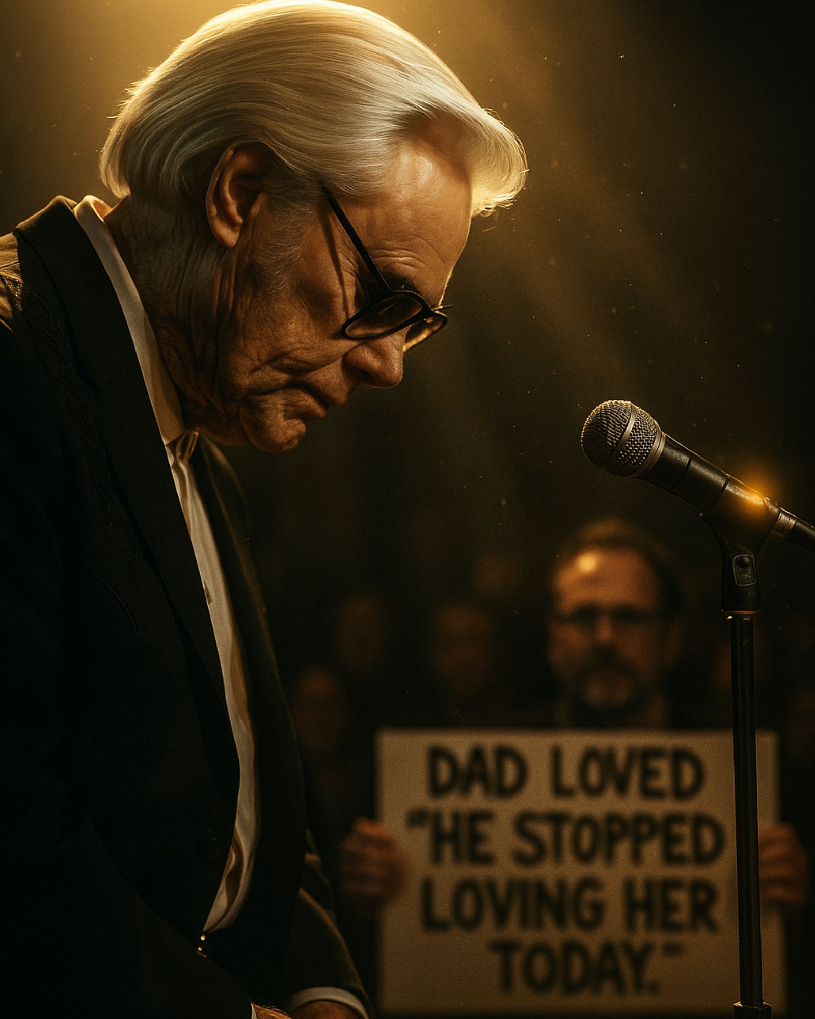 The audience went completely still. No cheering, no movement — just a silence heavy enough to feel. George began again, slower this time, each line trembling with the weight of years and memories. As he sang “He stopped loving her today…” his voice cracked, not from age, but from something deeper.