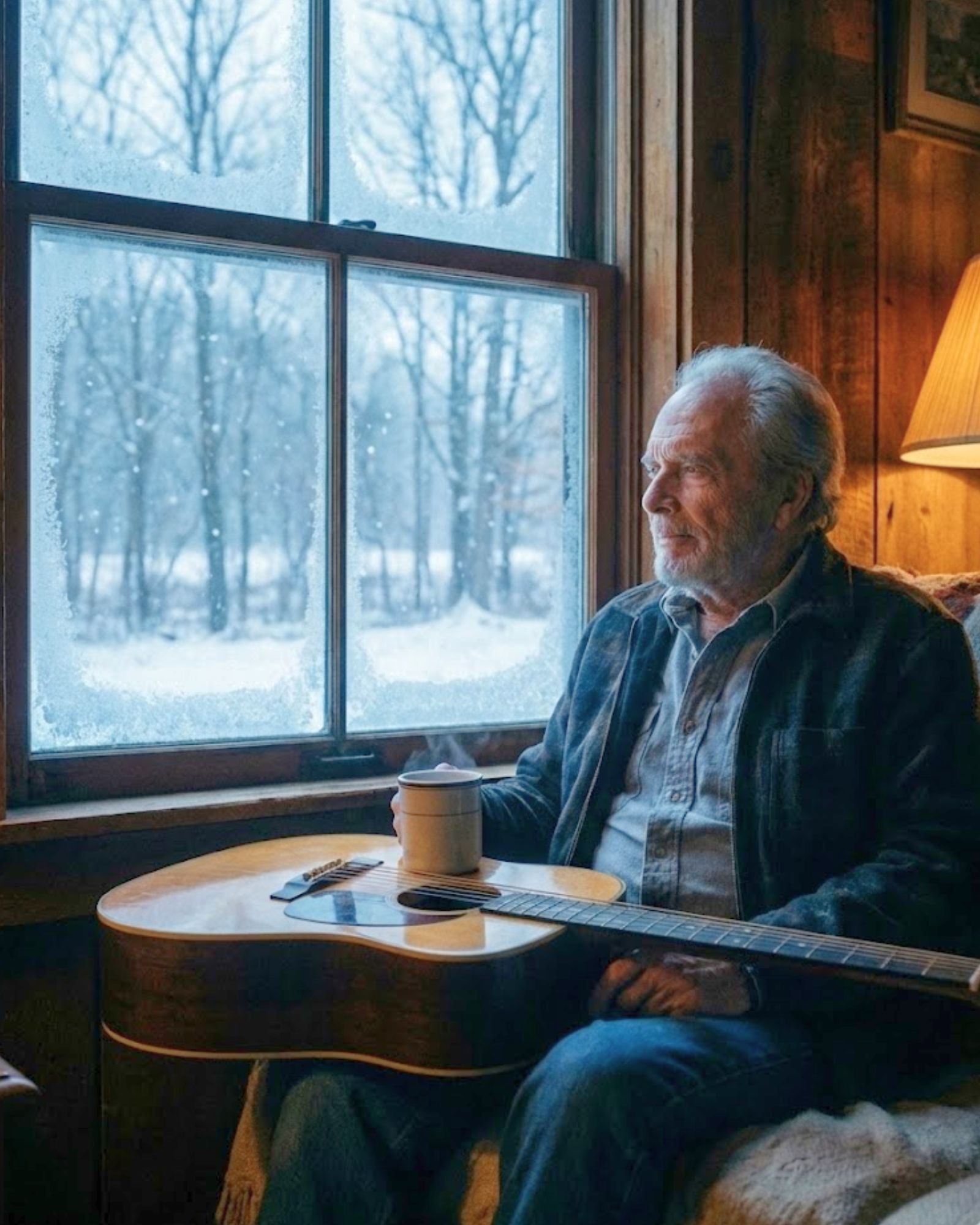 In the last winters of his life, Merle Haggard grew quieter than anyone expected. The man who had once lived louder, faster, and fuller than most people do in ten lifetimes suddenly found comfort in stillness. Friends would stop by his ranch, knock on the door, and wait for the familiar voice that used to greet them with a joke or a story. But more often than not, the door stayed closed. Merle wasn’t shutting people out — he was retreating into a place only he could walk through.