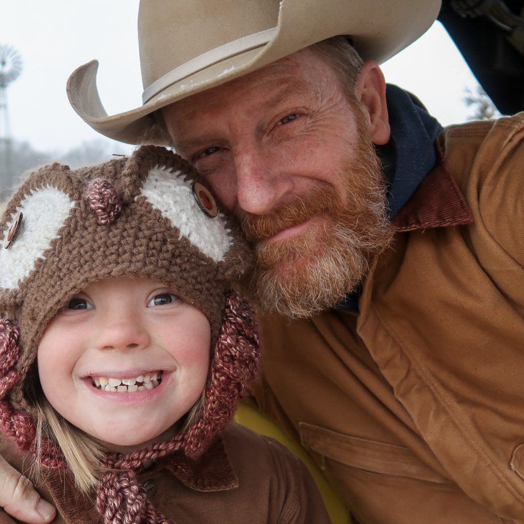 Indy sat with her knees tucked under a blanket, that owl-eared hat slipping over her eyes. She didn’t care about the frost or the chores — she was watching her father’s every move. When he finally looked up and smiled, she ran over, boots clapping against the frozen ground. He lifted her high into the air, and that’s when she said it.