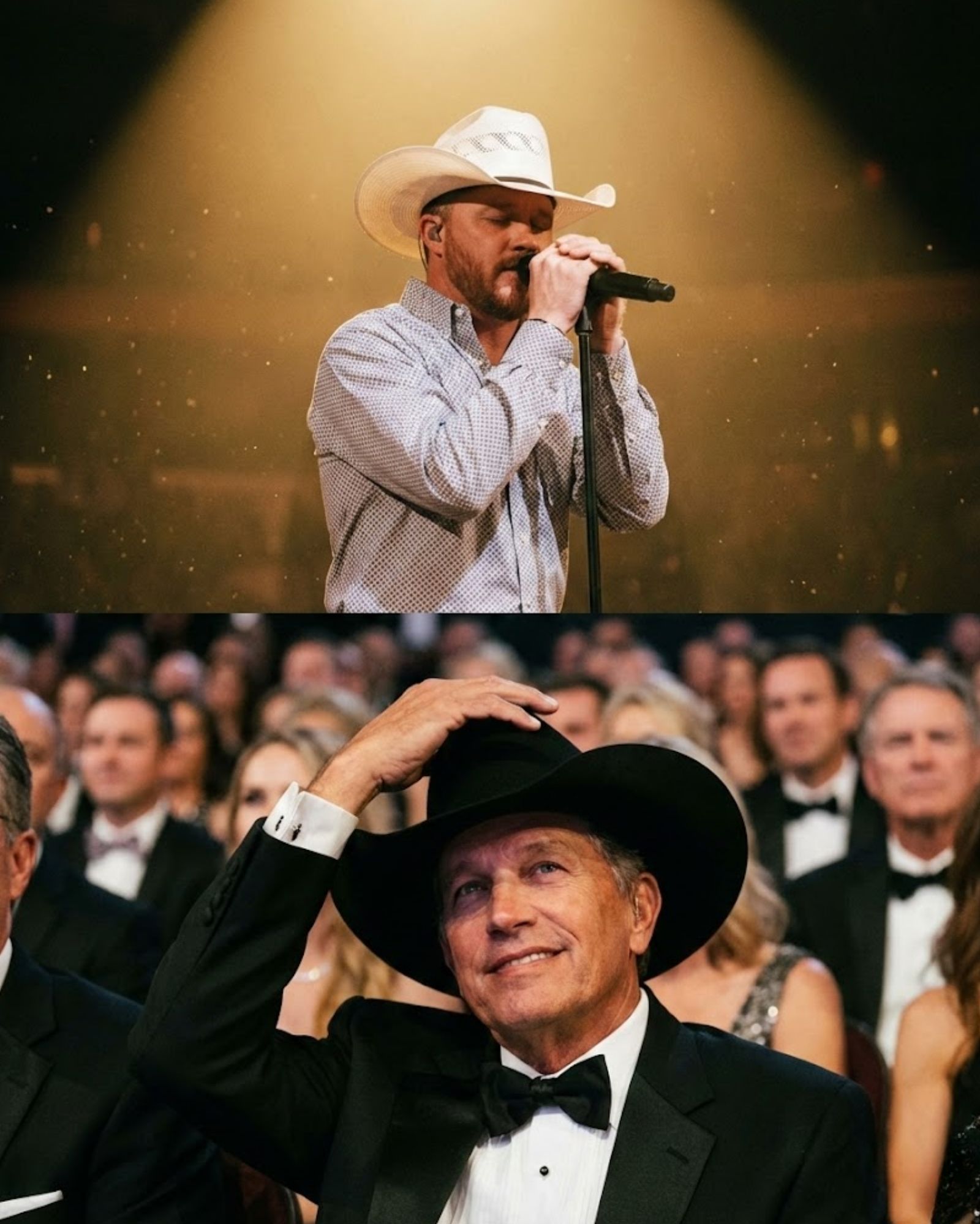 Throughout the song, Strait didn’t move. He didn’t lean over to whisper to his wife. He didn’t check his watch. He sat frozen, his eyes locked on the young man from Texas sweating under the spotlight.