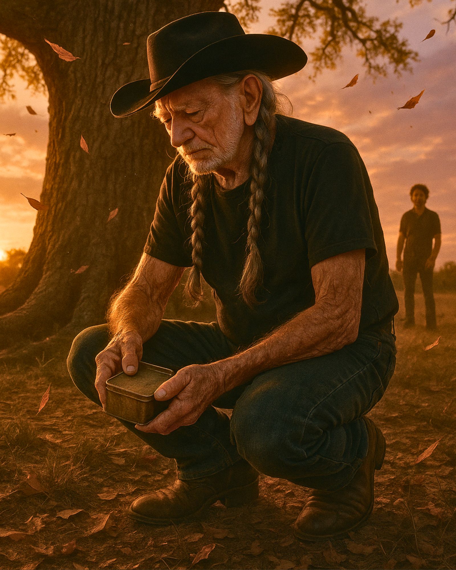 They say there’s a tin box somewhere on Willie Nelson’s ranch — buried beneath an old oak tree that’s seen more sunsets than most men ever will. Inside that box lies a tape. No label, no title, no date. Just the faint scratch of pen on faded paper: “For her.”