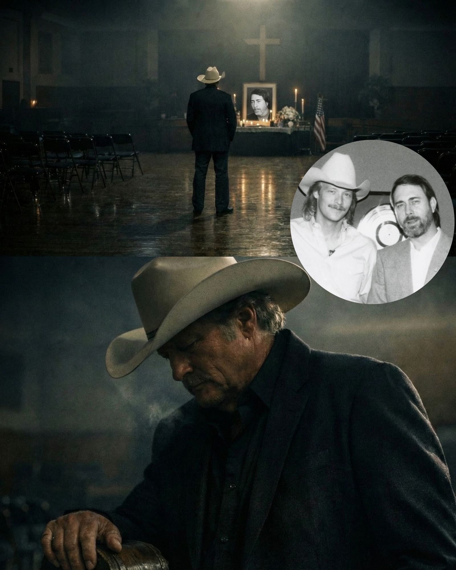 The room emptied slowly. Folding chairs echoed as they were stacked. The lights dimmed to a softer glow. Staff members paused, unsure whether to interrupt. Alan didn’t speak. He didn’t ask for privacy. He simply stayed where he was, standing near the front, hands still, eyes fixed on nothing in particular.